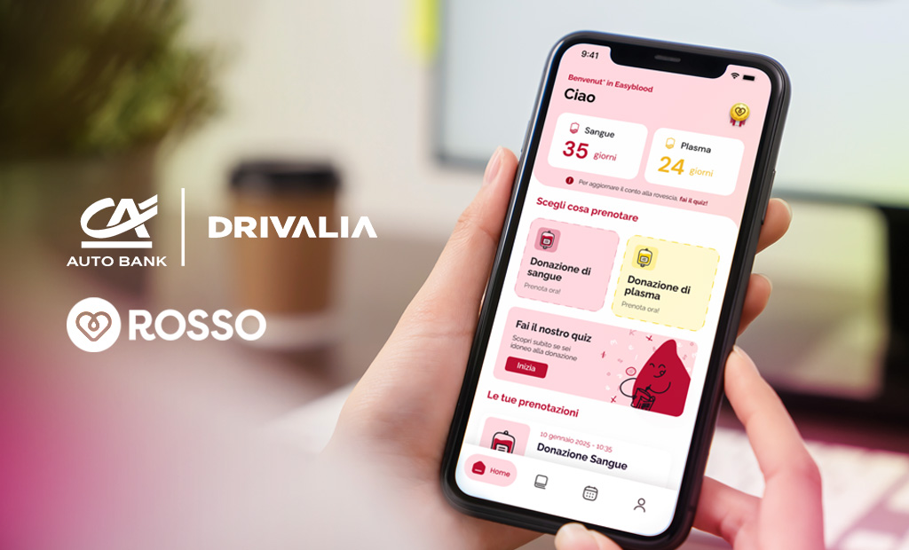 CA Auto Bank et Drivalia renforcent leur engagement en matière de responsabilité sociale en soutenant Rosso, la start-up italienne axée sur l’innovation et l’optimisation du processus de don de sang. Grâce à des outils numériques simples et intuitifs, Rosso cherche à mobiliser de nouveaux donneurs et à sensibiliser les jeunes générations à une cause de grande valeur sociale.