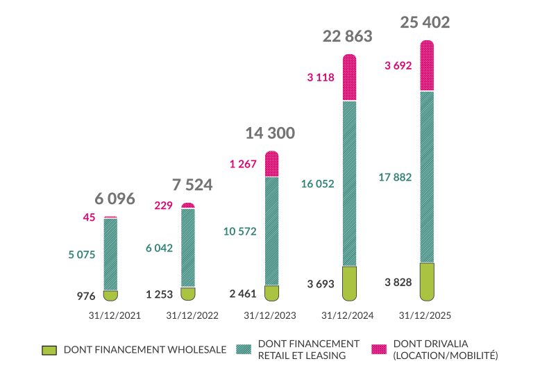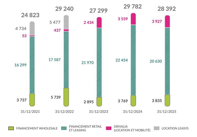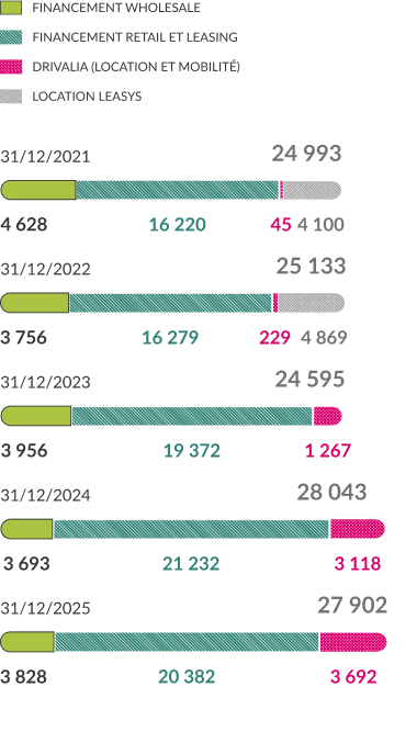 Financements Retail / Crédit-bail Financier – Encours de fin d’année par marché